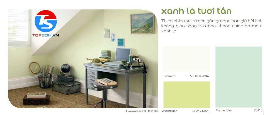 Những không gian rộng rãi thoáng mát khi áp dụng màu Lush – Nhựa sống sẽ vô cùng thích hợp. Topson Việt Nam gợi ý cho bạn không gian thư giãn thưởng trà trước hiên nhà hoặc nơi giải trí của cả gia đình là địa điểm vô cùng hợp lý. Con người và thiên nhiên hòa hợp với nhau, tận hưởng cuộc sống lý tưởng.