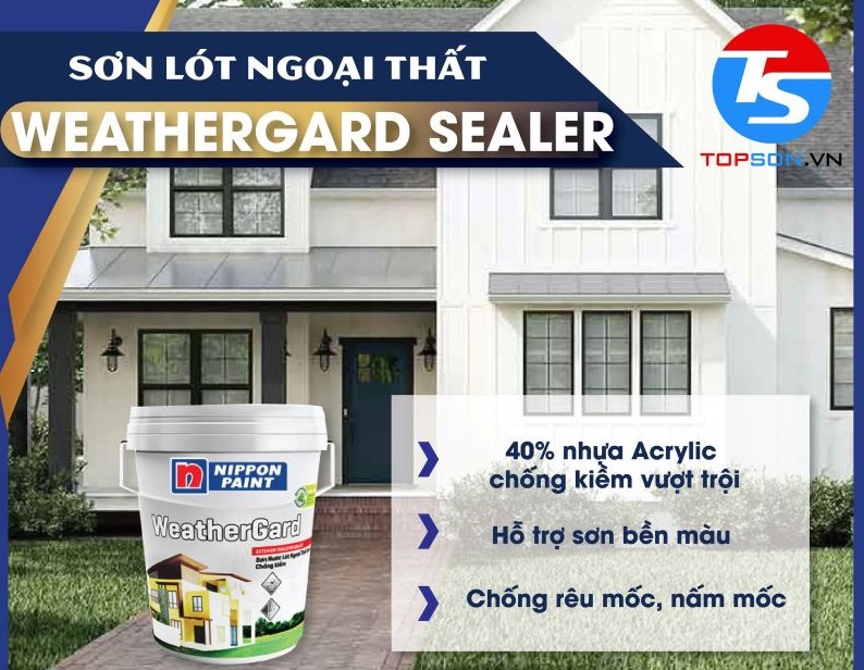 Sơn lót ngoại thất Nippon WEATHERGARD SEALER là một loại sơn vô cùng thân thiện với môi trường và đạt chuẩn Green Label của Singapore. Được pha chế đặc biệt với hàm lượng nhựa Acrylic tăng thêm 40%, sơn lót này mang lại khả năng bảo vệ và chống kiềm, kháng muối vượt trội. Chúng ngăn chặn hiện tượng phai màu và xuống cấp của lớp sơn, đồng thời tăng độ bám dính cho hệ thống sơn. Điều đặc biệt là Sơn Nippon WEATHERGARD SEALER còn rất hiệu quả trong việc chống rêu và mốc.