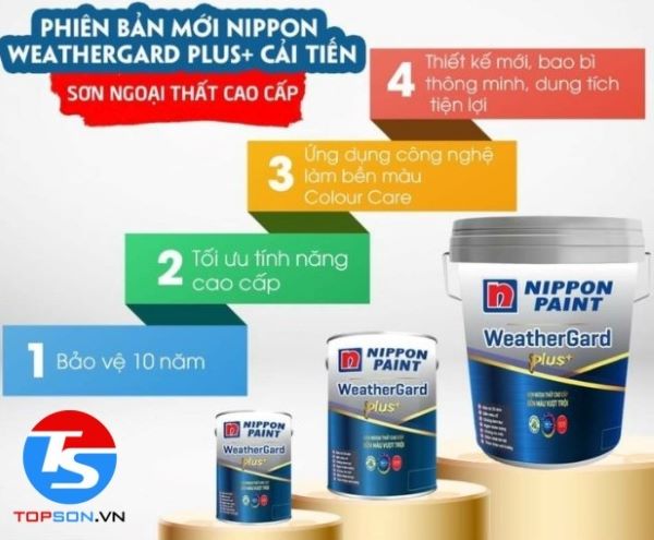 Nippon WEATHERGARD PLUS+ là một loại sơn nước ngoại thất cao cấp, có độ bền cao và khả năng chống thấm nước từ bên ngoài cũng như chống bám bụi tuyệt vời.