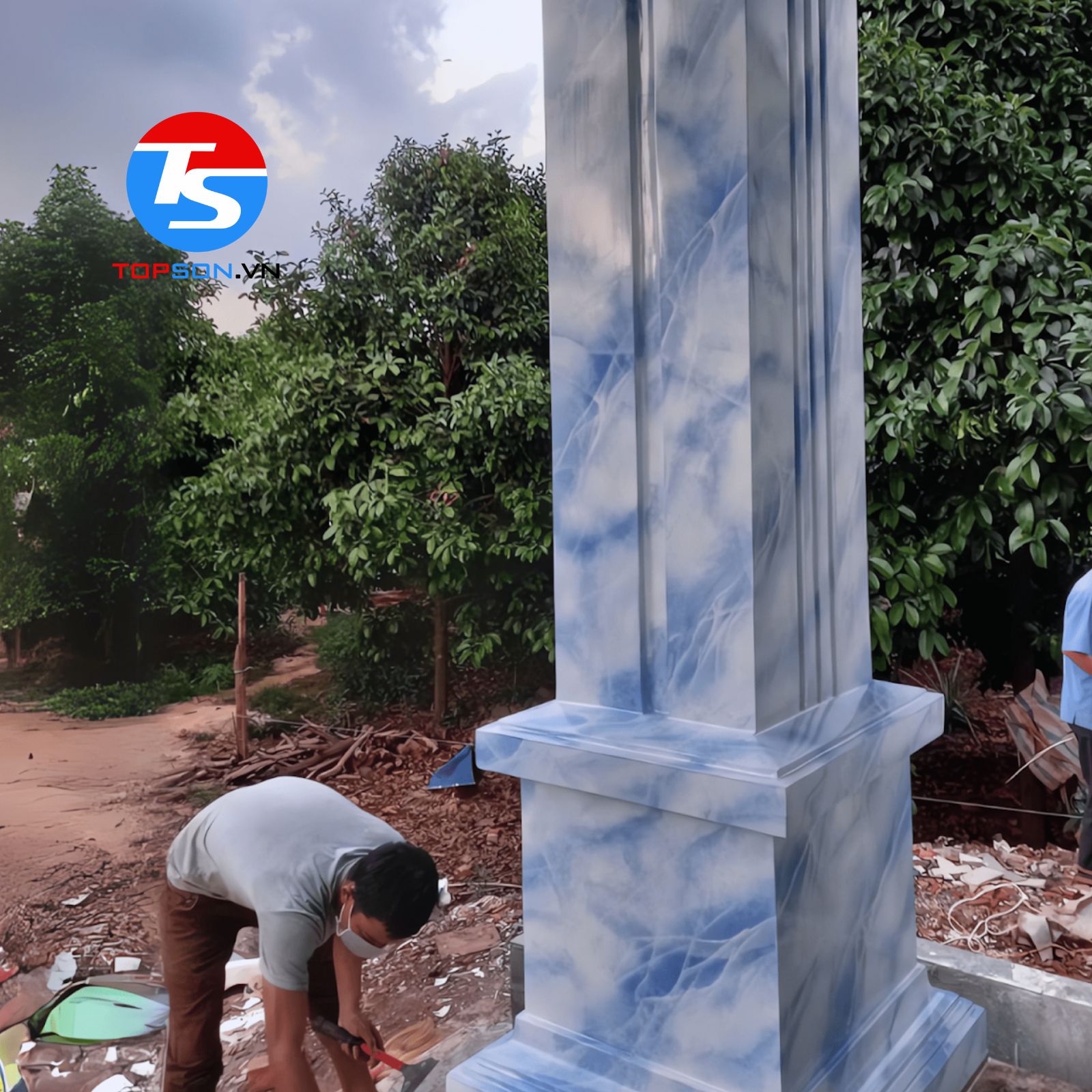 Mẫu sơn giả đá cẩm thạch cột vuông màu xanh dương